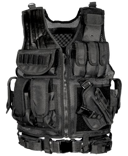 Premium Synthetic Material, Law Enforcement Quality Velcro, Snap-on and Buckle Systems, Reinforced Sniper Shoulder, Four Generous Rifle Mag Pouches for All Size Magazines, Three Pistol/Flashlight Pouches, Utility and Grenade Pouches, Survival Radio Pouch, Elastic Cartridge Holders for Close Quarter Battle Operations, Premium Quick Draw Holster with Spare Pouch, Velcro and Strap Attachable Double Mag Pouches, Law Enforcement Belt System Complete with Two Mag Pouches, Three Large Mesh Pockets for Document and Hydration System, Combat Quality Zipper, Fully Adjustable and Most Accommodating Height and Width, Complete Ventilation Mesh System for Great Comfort During Battles, This vest fits from teenager (small size) up to adult. Waist fits from 32 up to 56, belt fits up to 52